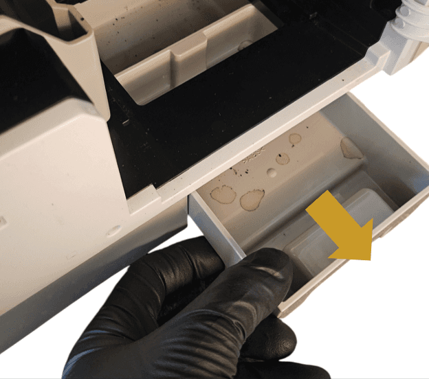 5.추출기 장착부 하단 파우더 트레이를 빼주세요.